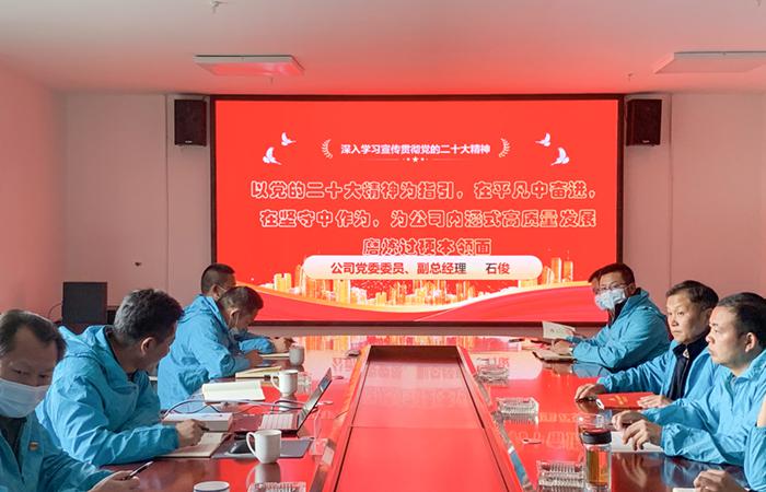 石俊強調(diào),認(rèn)真學(xué)習(xí)宣傳貫徹黨的二十大精神,是當(dāng)前和今后一個時期的頭等大事和首要政治任務(wù)。一要用黨的二十大精神武裝頭腦,讓黨的二十大精神成為全體黨員干部干事創(chuàng)業(yè)的思想武器、力量源泉和精神支柱。二要用黨的二十大精神凝魂聚力,按照公司黨委要求,有重點、分步驟、多層次開展學(xué)習(xí)貫徹黨的二十大精神各項活動,迅速掀起學(xué)習(xí)貫徹工作熱潮,確保宣傳貫徹到黨員和干部職工心里。三要用黨的二十大精神推動實現(xiàn)各項年度重點工作目標(biāo),科學(xué)謀劃新思路、新舉措、新方式,不折不扣貫徹落實好黨的二十大的“統(tǒng)籌發(fā)展和安全”的重要要求,以實干推動年度目標(biāo)的實現(xiàn)。四要結(jié)合學(xué)習(xí)黨的二十大精神,緊緊圍繞事關(guān)項目一線生產(chǎn)、安全、技術(shù)、質(zhì)量等重難點問題,開展深入研究,統(tǒng)籌做好年關(guān)各項工作,確保取得實實在在的工作成效,以優(yōu)異的工作成績助推公司內(nèi)涵式高質(zhì)量發(fā)展。