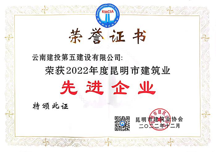 2022年12月8日,昆明市建筑業(yè)協(xié)會(huì)召開第八屆理事會(huì)換屆選舉會(huì)員大會(huì),公司繼續(xù)當(dāng)選為昆明市建筑業(yè)協(xié)會(huì)副會(huì)長(zhǎng)單位,同時(shí)榮獲2022年度昆明市建筑業(yè)“先進(jìn)企業(yè)”“質(zhì)量管理優(yōu)秀企業(yè)”“質(zhì)量管理小組活動(dòng)優(yōu)秀企業(yè)”3項(xiàng)榮譽(yù)。