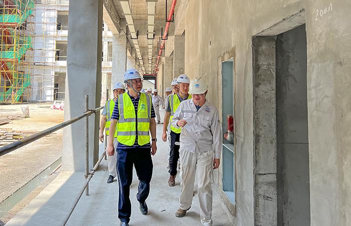 段益慶一行深入施工現(xiàn)場(chǎng),聽(tīng)取項(xiàng)目負(fù)責(zé)人對(duì)項(xiàng)目生產(chǎn)安全工作開(kāi)展情況匯報(bào),實(shí)地察看了綜合大樓、學(xué)術(shù)報(bào)告廳等施工部位,詳細(xì)了解項(xiàng)目進(jìn)展、安全管理組織構(gòu)架、現(xiàn)階段存在的困難及現(xiàn)場(chǎng)安全管控等方面的情況,并對(duì)下一步生產(chǎn)安全工作提出要求。