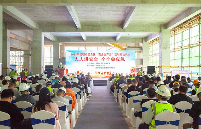 6月9日上午,呈貢區(qū)2023年“安全生產(chǎn)月”啟動(dòng)儀式在公司第七直管項(xiàng)目部負(fù)責(zé)施工的云南藝術(shù)學(xué)院二期(一標(biāo)段)建設(shè)項(xiàng)目舉行,呈貢區(qū)住建局副局長(zhǎng)張永明、應(yīng)急管理局副局長(zhǎng)徐魯臣,云南藝術(shù)學(xué)院基建后勤處黨總支書記童汝全,公司副總經(jīng)理石俊出席啟動(dòng)儀式并講話。