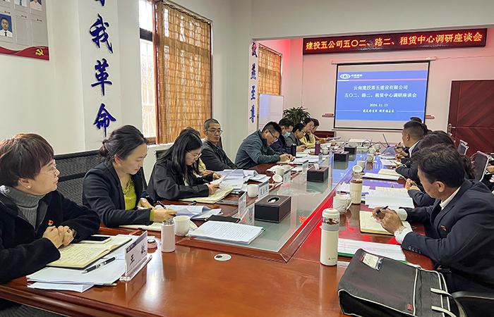 11月13日上午,公司黨委副書記(主持工作)、董事長唐生炳,黨委委員、副總經理仲金榮,黨委委員、紀委書記李強,黨委委員、工會主席白建萍、財務總監(jiān)楊潔到五〇二直管項目部、路橋二部、租賃中心調研座談。
