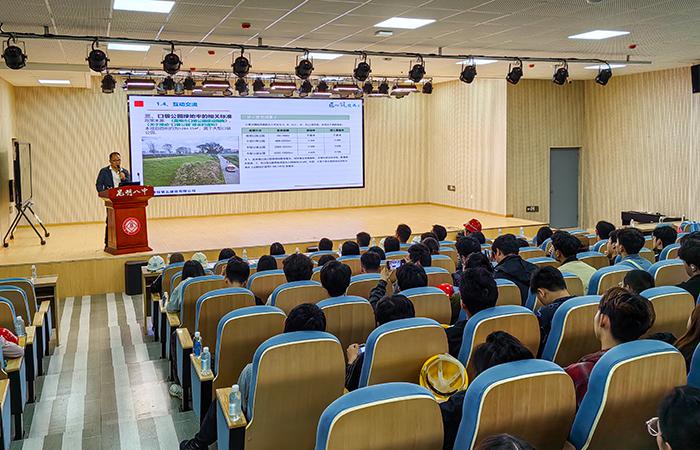 交流座談會上,直管部主任工程師從項(xiàng)目規(guī)劃藍(lán)圖、設(shè)計(jì)理念、室外綠化景觀設(shè)計(jì),到施工過程中攻克的技術(shù)難題,再到校園風(fēng)貌最終效果,詳細(xì)介紹項(xiàng)目整體情況,為前來參觀的農(nóng)大師生展示了項(xiàng)目建設(shè)每一處細(xì)節(jié)。在介紹過程中,主任工程師還特別強(qiáng)調(diào)校園建筑在有限的空間布局、功能分區(qū)上如何滿足現(xiàn)代化教學(xué)需求,以及本項(xiàng)目在綠色環(huán)保、可持續(xù)發(fā)展方面的創(chuàng)新舉措,引起了師生的濃厚興趣。