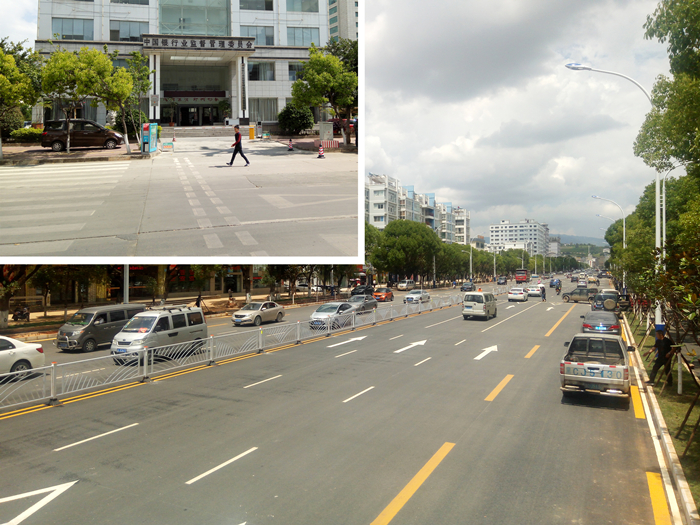 蒼山路改造前后對比,改造后路面平整寬闊。