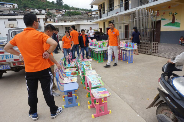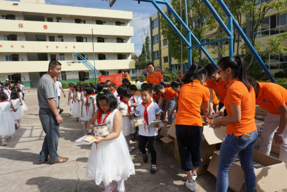 “我要米奇!我要熊二!我要……”在玉屏村幼兒園,孩子們看到五顏六色的小桌椅都禁不住七嘴八舌地開始挑選起自己喜愛的圖案。玉屏村小學里孩子們在校長組織下有序地從橙色衣服叔叔和阿姨手中的小蛋糕和學習用品,嘴里不停地說著“謝謝”,少先隊員們則不時地敬禮表示謝意。漢邑村小學孩子們用精彩的鼓樂表演來表達對彌玉高速象山試驗段送來學習用品的謝意。最后一站曲陀關(guān)小學,當“橙色小分隊”載著滿滿一車的盆景到達時,孩子們已經(jīng)穿著整齊的服裝在列隊歡迎,讓人感動的是,車才停穩(wěn),高年級的同學們立即七手八腳的幫忙把盆栽搬下車,孩子們一聲聲的驚嘆聲以及臉上開心的神情讓大家感到無比的欣慰。