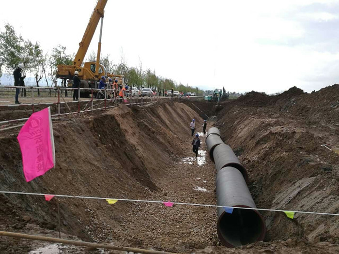 大理州三庫(kù)連通一期工程位于云南省大理州洱源縣境內(nèi)及大理市上關(guān)鎮(zhèn),為洱海應(yīng)急補(bǔ)水的重要部分,工程內(nèi)容主要為DN1200球墨鑄鐵管埋設(shè),有效工期僅為35天。公司施工的六標(biāo)段位于路線中部,路線沿永安江布設(shè),分為永安江段、鄧川上關(guān)段。起止樁號(hào)為:永安江段YA04+400~YA05+570,鄧川上關(guān)段DS00+000-DS01+800,管道路線全長(zhǎng)2970米。