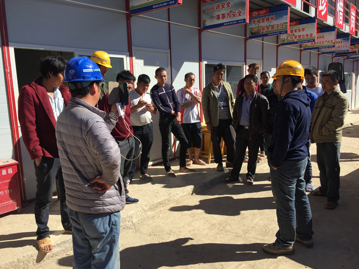 宣貫小組在勞務(wù)班組駐地進(jìn)行宣貫