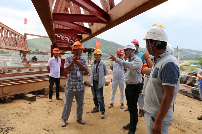 下午2點(diǎn)30分,大家在項(xiàng)目部會(huì)議室聽(tīng)取了項(xiàng)目吊裝架設(shè)施工安全專項(xiàng)方案匯報(bào),對(duì)項(xiàng)目工程概況、編制依據(jù)、施工計(jì)劃、工藝技術(shù)、安全保證措施、勞動(dòng)力計(jì)劃及計(jì)算書進(jìn)行了了解。項(xiàng)目部管理人員對(duì)首片箱梁的吊裝架設(shè)開展了安全、技術(shù)交底。公司相關(guān)職能部門對(duì)箱梁的保養(yǎng)和維護(hù)、安全管理以及交底等工作進(jìn)行了強(qiáng)調(diào)。