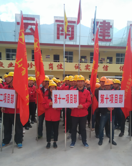 香麗高速項目青年突擊隊共計20支,由各個參建單位分別組建而成,香麗高速公路項目指揮部臨時黨總支書記鐘云誠、集團團委副書記楊瑜及香麗高速指揮部副指揮長李雄周、總工程師李德宏為青年突擊隊授旗。公司“玉龍雄鷹”青年突擊隊由香麗路項目駐地公司年輕副總經(jīng)理楊永擔(dān)任隊長,項目部35歲以下青年職工共計66人組成,公司青年突擊隊代表馬勇在此接受隊旗并代表項目部表態(tài)發(fā)言。根據(jù)青年突擊隊競賽考核書,本次青年突擊隊競賽活動從2016年6月1日至2016年12月31日止,以“安全、質(zhì)量、進度、創(chuàng)新、團隊建設(shè)和形象”為主題開展。