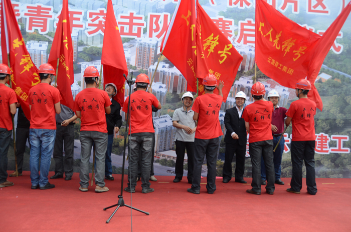 5月17日,保山片區(qū)2012年保障房建設(shè)項(xiàng)目勞動(dòng)競(jìng)賽暨青年突擊隊(duì)競(jìng)賽啟動(dòng)儀式在保山市隆陽(yáng)區(qū)5#地塊拉開(kāi)帷幕。圍繞集團(tuán)提出的保障房建設(shè)“四保一控一樹(shù)”目標(biāo),勞動(dòng)競(jìng)賽激發(fā)廣大職工立足崗位奮發(fā)趕超的進(jìn)取精神,青年突擊隊(duì)激發(fā)青年職工比貢獻(xiàn)、比業(yè)績(jī),迅速掀起施工生產(chǎn)高潮,為順利完成保障房建設(shè)的目標(biāo)任務(wù)助力加油。