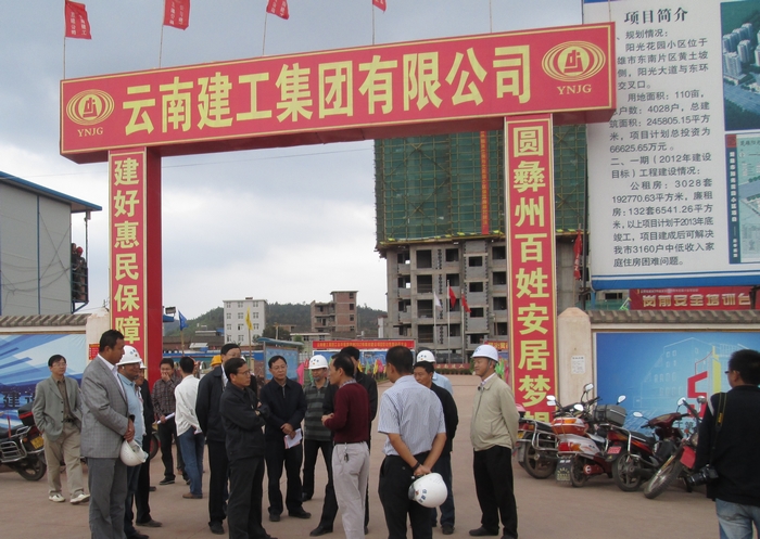 5月3日,云南省副省長丁紹祥、楚雄州州委、楚雄市市委等相關(guān)領(lǐng)導(dǎo)到公司楚雄市2012年公共租賃住房-陽光花園小區(qū)工地視察。