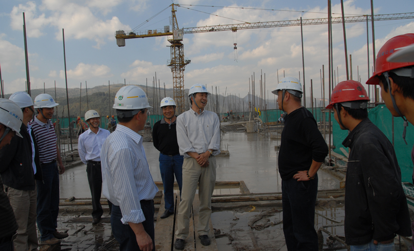 在即將封頂?shù)募瘓F(tuán)景秀西苑經(jīng)濟(jì)適用房工程四標(biāo)段第六棟號工地,納董事長一行和五建及省房領(lǐng)導(dǎo)一起,放棄乘電梯,從一樓步行到二十八樓頂層作業(yè)面,逐層查看了現(xiàn)場施工管理情況,向兼任五公司景秀西苑經(jīng)濟(jì)適用房工程項(xiàng)目管理部經(jīng)理的五建紀(jì)委書記謝海健和四標(biāo)段項(xiàng)目經(jīng)理李云華等了解了工程施工管理情況。