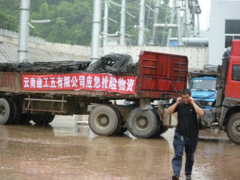 今天,共有10輛運(yùn)輸車陸續(xù)發(fā)出,中午,得知有兩輛運(yùn)輸車拋錨,正在緊急搶修。公司紀(jì)委書記謝海健、材料供應(yīng)部經(jīng)理殷勇南趕到搶險(xiǎn)現(xiàn)場。到下午6點(diǎn),到場車輛6輛,剩余4輛在距離現(xiàn)場20-100公里范圍內(nèi),現(xiàn)場下起大雨,進(jìn)場道路本來就坡陡彎急,雨后更加泥濘濕滑,加之天色已晚,為了安全起見,在請示集團(tuán)現(xiàn)場領(lǐng)導(dǎo)后,我們向最后4輛運(yùn)輸車下達(dá)了在距現(xiàn)場20公里位置休息,天亮后再進(jìn)現(xiàn)場的指令。