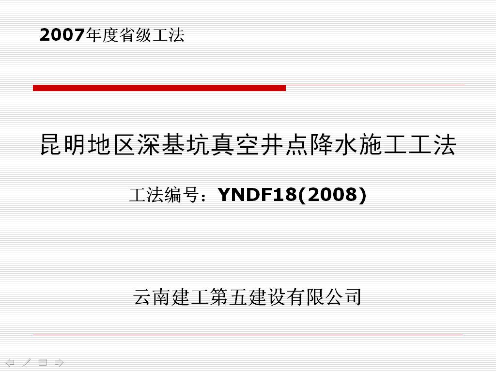云南五建編制的省級工法——昆明地區(qū)深基坑真空井點降水施工工法