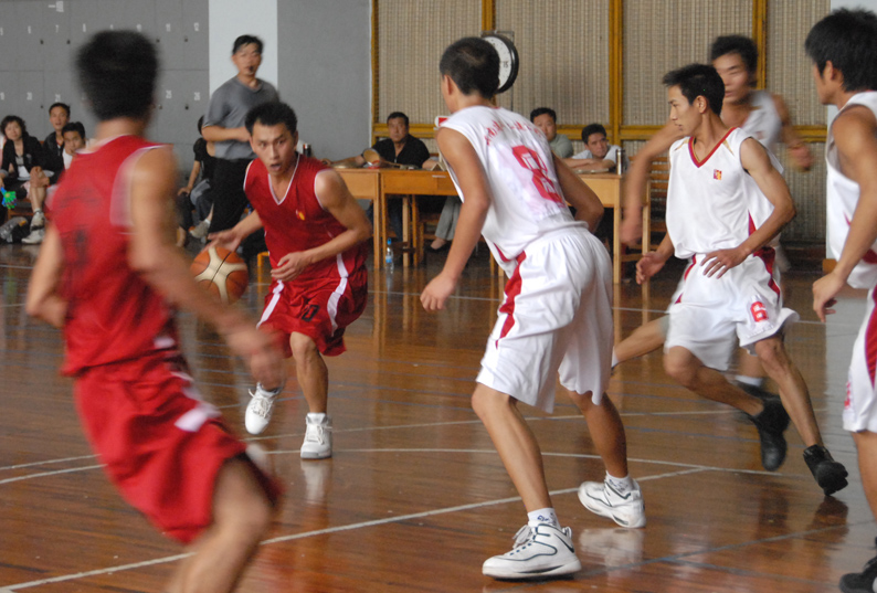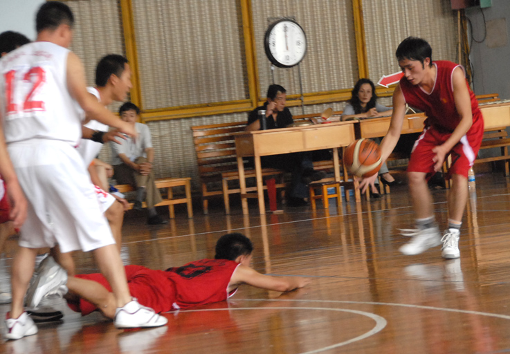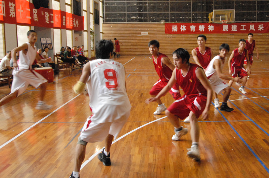 開賽后,他們同心協(xié)力,一度以17比9領(lǐng)先,逼對方換上了主力隊員。雖然此后形勢急轉(zhuǎn)直下,比分被對方反超,但五建上場隊員們?nèi)匀σ愿?,頑強拼搏,絕不放棄. 對方由于有10多名隊員輪換,而五建上場的6名隊員基本無法輪換,可是直到終場,你從他們身上看不到一絲一毫的疲憊,看不到一丁一點的懈怠。雖然觀眾不多,雖然吶喊助威之聲稀少,雖然是到了體力極大消耗之后的下半場,他們依然保持高昂的斗志。無論前場后場,他們都步步緊逼,不放過一個機會、不放棄每個球權(quán),個個全力拼搏,人人都被汗水濕透了全身。雖說最終以幾分之差告負(fù),但是體育的精神,頑強的拼搏,被他們作出了實實在在的演繹。奉獻給觀眾的,是依然精彩的比賽。