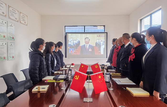 10月16日上午,中國共產(chǎn)黨第二十次全國代表大會將在北京召開,這是黨和國家政治生活中的一件大事。五〇一組織班子成員、項目經(jīng)理、科室負責(zé)人及在建項目職工共計56人,其中,黨員同志17名,認真收聽收看大會直播節(jié)目。五〇一直管部的黨員干部、職工同志們整齊著裝、精神抖擻,聚精會神收看開幕會直播。大家邊聆聽大會報告,邊認真記錄報告要點。也和屏幕里大會現(xiàn)場一樣,奏唱國歌,每當(dāng)屏幕里傳出熱烈的掌聲時,大家也發(fā)自…