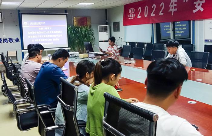 8月5日晚,路橋三部組織全體共青團(tuán)員及青年職工,在永金高速一分部項(xiàng)目部會(huì)議室學(xué)習(xí)共青團(tuán)中央[2022]14號文及共青團(tuán)云南省委關(guān)于學(xué)習(xí)宣傳貫徹習(xí)近平總書記《論黨的青年工作》的通知。會(huì)議深刻領(lǐng)悟團(tuán)中央“深刻認(rèn)識《論黨的青年工作》的重大意義,深刻領(lǐng)會(huì)《論黨的青年工作》的豐富內(nèi)涵,學(xué)懂弄通做實(shí)《論黨的青年工作》的核心要義”及團(tuán)省委“深入學(xué)習(xí)領(lǐng)悟,廣泛宣傳教育,抓好貫徹落實(shí)”的文件精神。同時(shí),摘選習(xí)近平總…