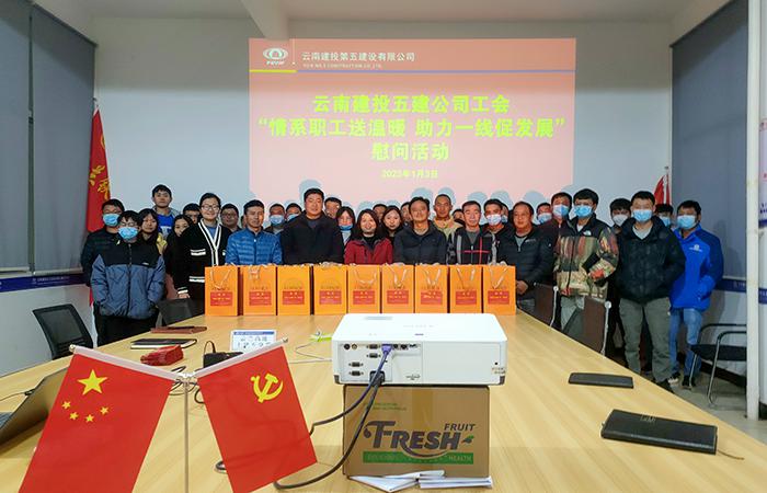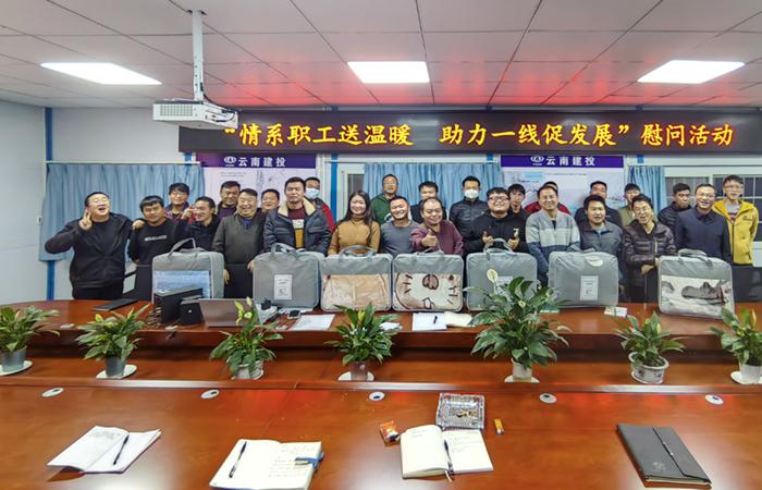 1月4日晚,五〇二直管部工會到到開遠市小龍?zhí)赌隙礈细囊乒こ涕_展“情系職工送溫暖 助力一線促發(fā)展”慰問活動,深入基層、深入項目一線,為職工送去直管部的溫暖與關(guān)懷。慰問時,直管部書記將毛毯等慰問品一一送到同志們的手里,并叮囑大家,一是春節(jié)臨近,時至寒冬,大家在工作生活中要注意防寒保暖,‘身體是革命的本錢’,你們的健康是我們最大的欣慰。二是年關(guān)將至,大家要守好2022年的最后一關(guān),合理安排年前的施工任務(wù)…