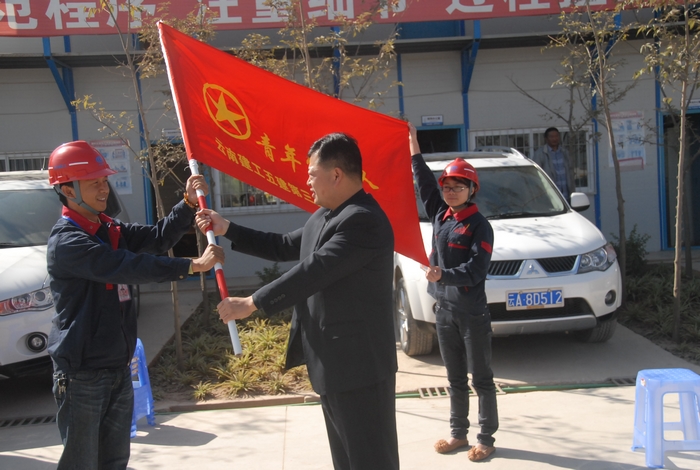 李興奎為玉溪公租房項(xiàng)目部青年突擊隊(duì)授旗