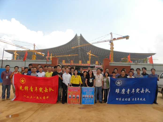 9月19日上午,集團(tuán)公司團(tuán)委副書記雷棲、公司團(tuán)委副書記楊春華等聯(lián)袂到公司新機(jī)場直管部為東、西兩個(gè)施工區(qū)的青年人舉行 “青年突擊隊(duì)”授旗儀式,這標(biāo)志著新機(jī)場直管部的兩支青年突擊隊(duì)——雛鷹隊(duì)和先鋒隊(duì)正式成立。 雛鷹隊(duì)得名來自于航站樓外觀,隊(duì)員為東施工區(qū)18名青年人。突擊口號(hào)為“樹東區(qū)形象,展青年風(fēng)采”。先鋒隊(duì)隊(duì)員為西施工區(qū)20名青年,突擊口號(hào)“一二三一...
