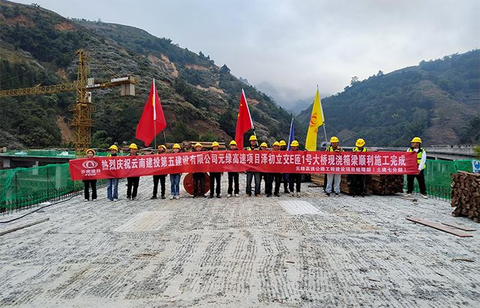 百日攻堅(jiān) | 元綠高速項(xiàng)目土建七分部澤初立交E匝1號大橋現(xiàn)澆箱梁澆筑完成