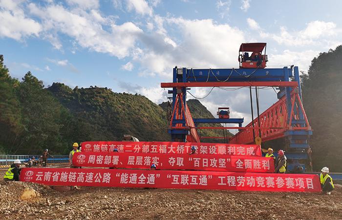 百日攻堅(jiān)|施鏈高速二分部五福大橋T梁架設(shè)完成