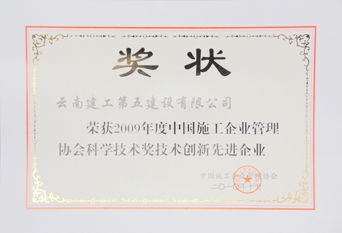 2012年12月公司榮獲中國建筑業(yè)協(xié)會頒發(fā)的創(chuàng)魯班獎工程突出貢獻獎(銅獎)。