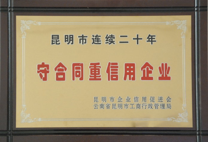 昆明連續(xù)20年重合同守信用企業(yè)