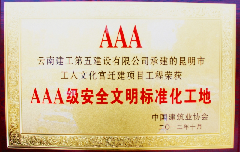 公司承建的昆明市工人文化宮遷建項目工程榮獲AAA級安全文明標準化工地