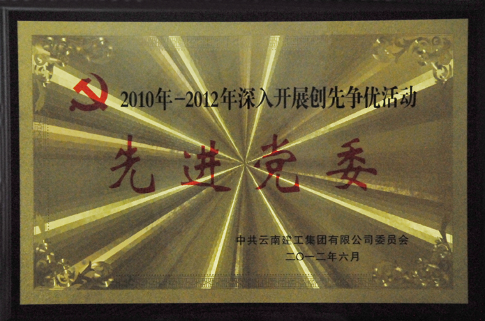 2012年6月29日,公司黨委被集團評為2010年-2012年深入開展創(chuàng)先爭優(yōu)活動“先進黨委”。