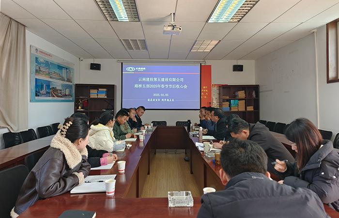 2月5日,路橋五部組織召開(kāi)2025年春節(jié)后收心會(huì),安排部署近期重點(diǎn)工作,統(tǒng)一思想、凝聚共識(shí),確保今年工作開(kāi)好局、起好步。直管部班子成員、在昆項(xiàng)目經(jīng)理、各科室負(fù)責(zé)人及科員共20人參加會(huì)議。會(huì)議傳達(dá)了集團(tuán)、公司《關(guān)于做好“春節(jié)”節(jié)后建設(shè)工程項(xiàng)目復(fù)工復(fù)產(chǎn)工作的通知》《關(guān)于印發(fā) 2025 年春節(jié)節(jié)后在建項(xiàng)目復(fù)工復(fù)產(chǎn)方案的通知》等文件精神。會(huì)議要求,一是全體職工要明確工作職責(zé)和工作目標(biāo),迅速?gòu)墓?jié)日氛圍中走出…